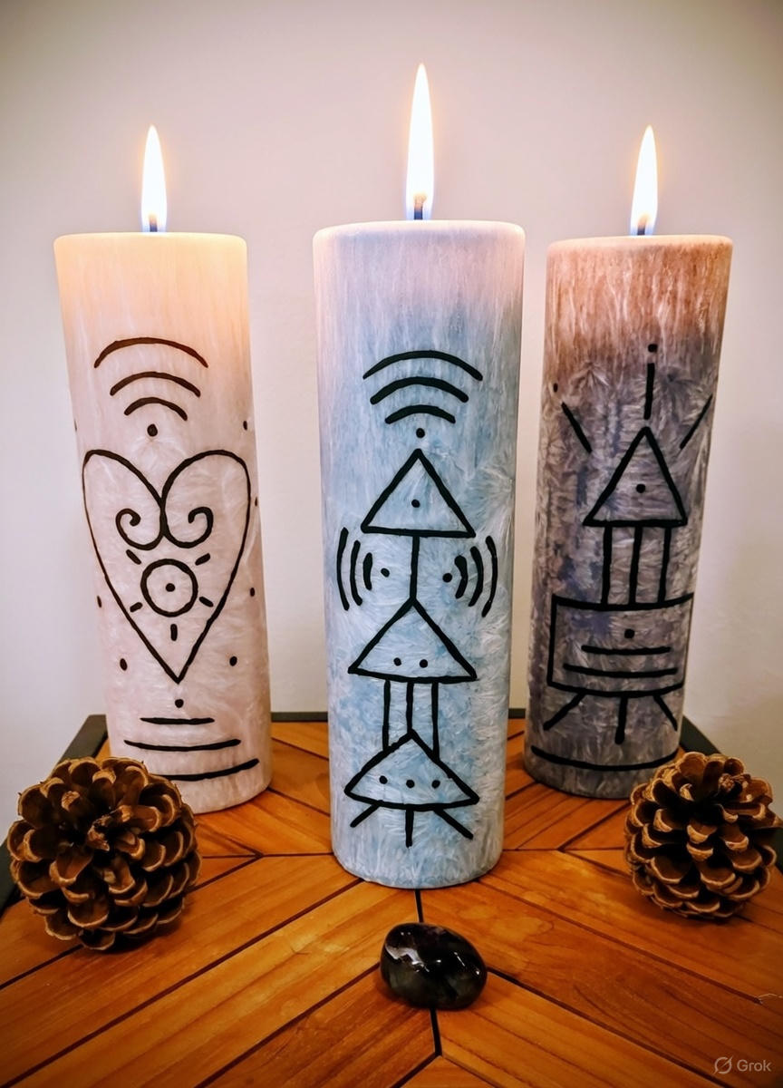 Výroba svíček je alchymie. Přesná teplota vosku, ve správnou dobu rozpouštět barvu, zvolit vhodné barvy na symboly a to vše, aby bylo zdraví nezávadné a naopak blahodárné pro naše tělo i ducha.