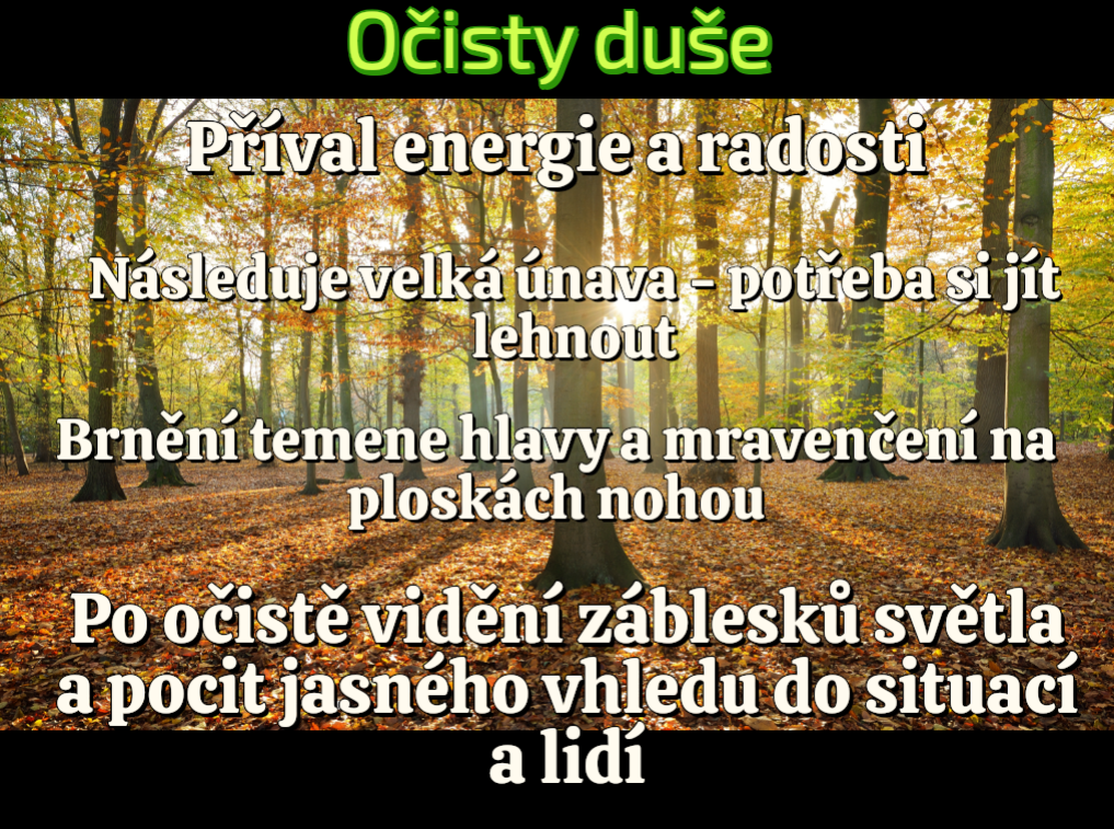 Někteří z vás nám zase naopak píšete, že se již před očistou anebo během ní cítíte skvěle, nabuzeně, s energií – to je zase zpráva o tom, že jste v minulosti pozměnili život tak , jak to máte mít a teď jasně vidíte i své plody. Je to zpráva, že máte takto ve své cestě pokračovat a očisty vám pomáhají k tomu, tyto projevy jasně vidět a vnímat.